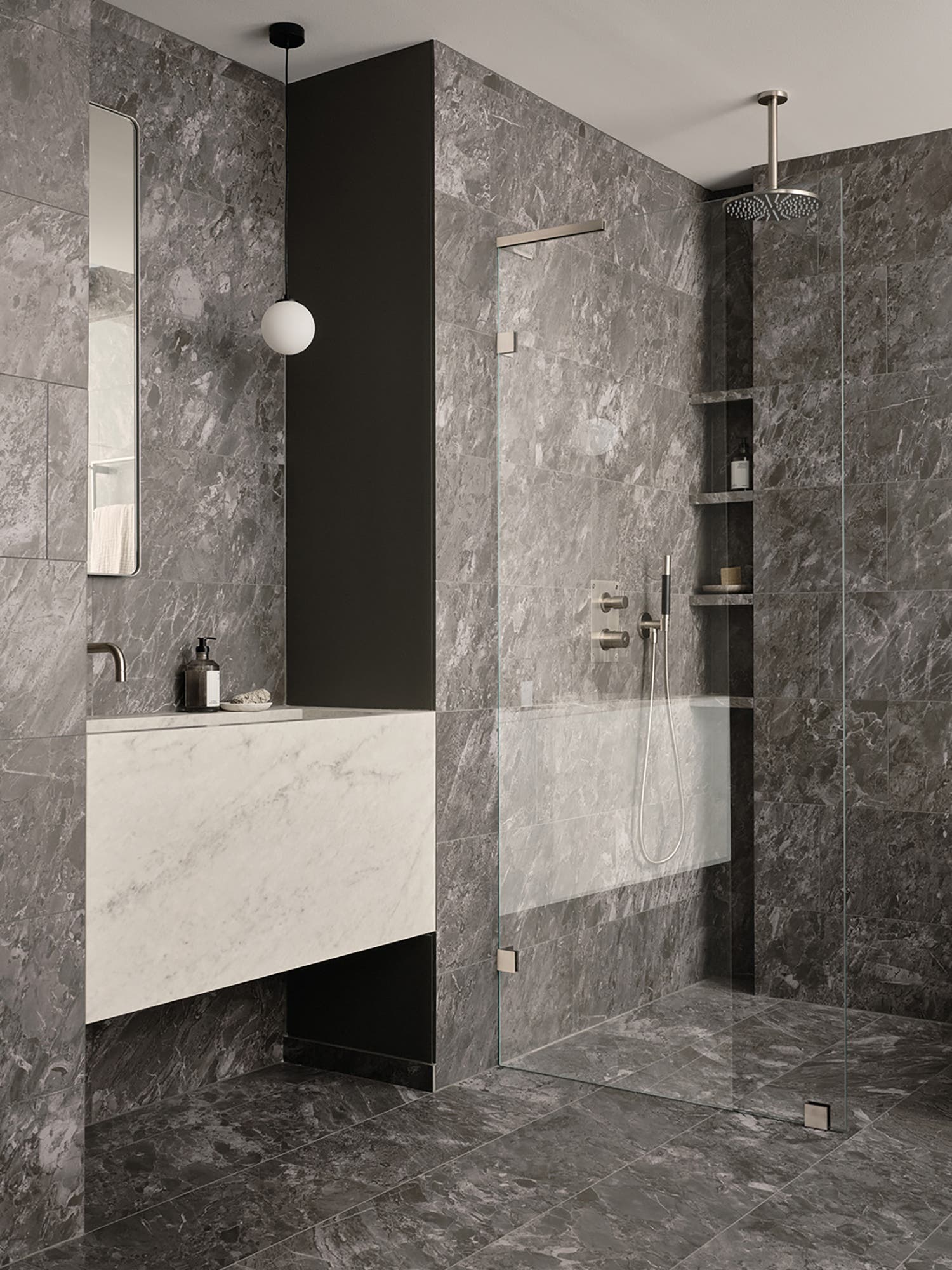 Duschväggen är en enkel, minimalistisk lösning som kan vara en fast skärm eller en dörr – perfekt för att frigöra yta när duschen inte används. Den passar både små och stora badrum, och vi erbjuder även speciallösningar för badkar och snedtak. Låt inspirationen flöda!