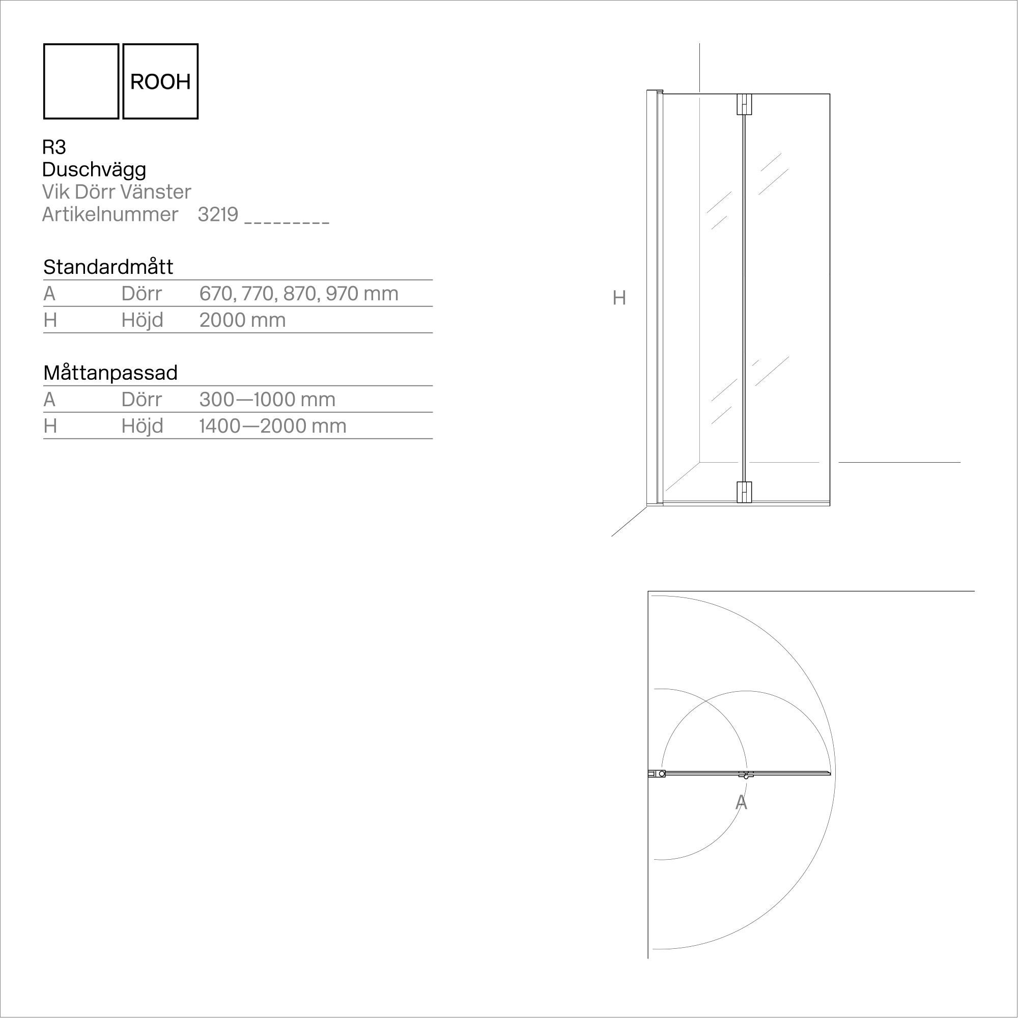 R3 Duschvägg Vik Dörr