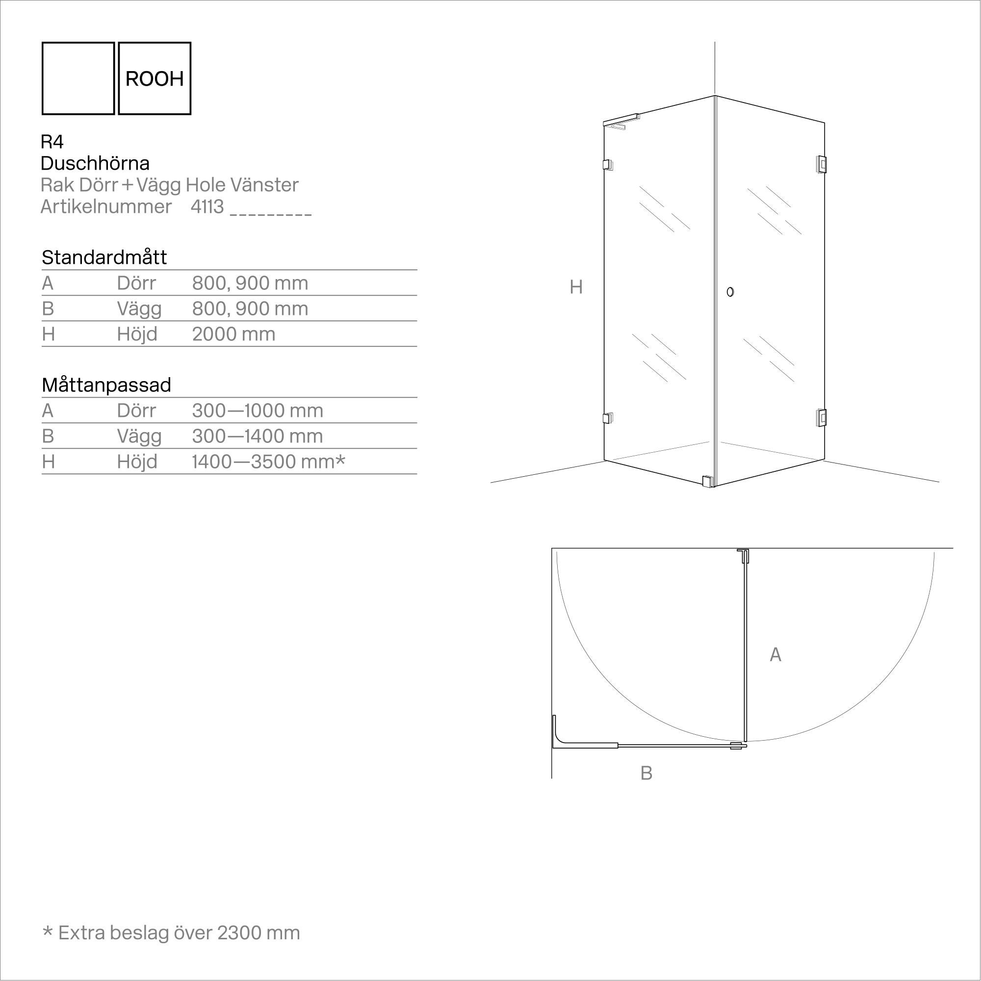 R4 Duschhörna Rak Dörr+Vägg