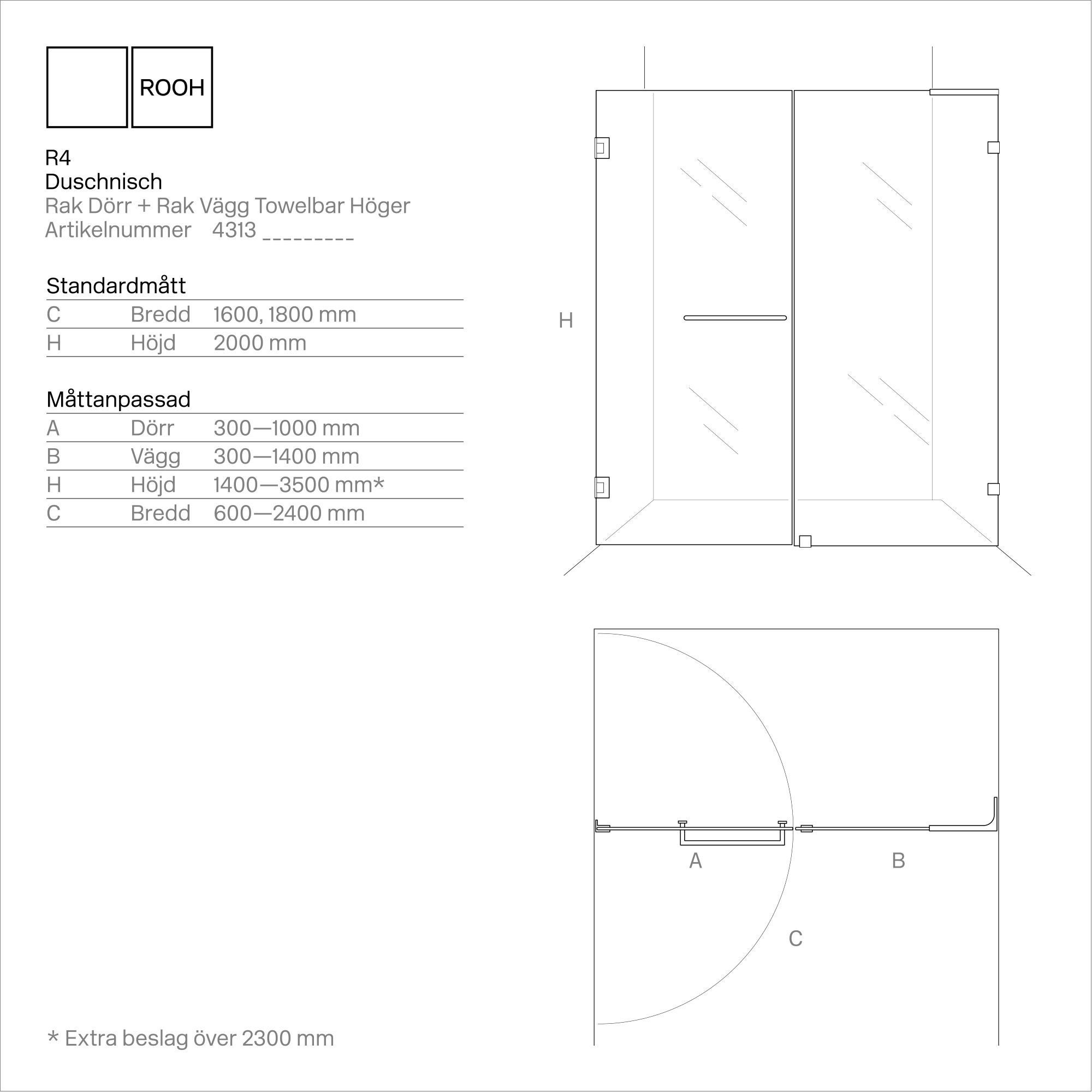 R4 Duschnisch Rak Dörr+Vägg