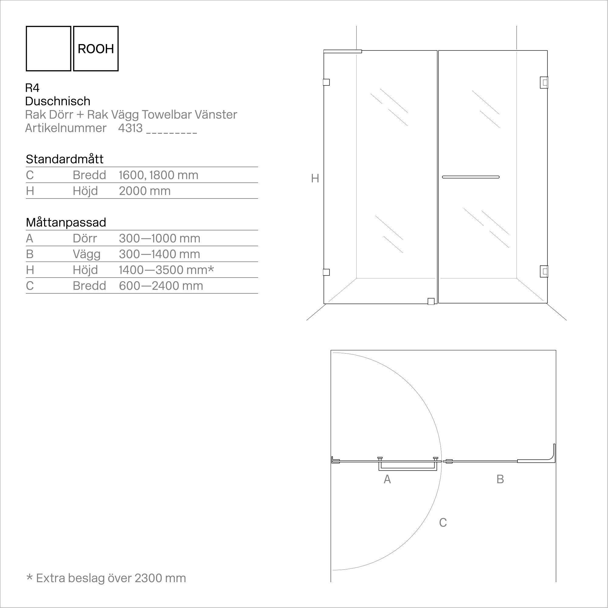 R4 Duschnisch Rak Dörr+Vägg